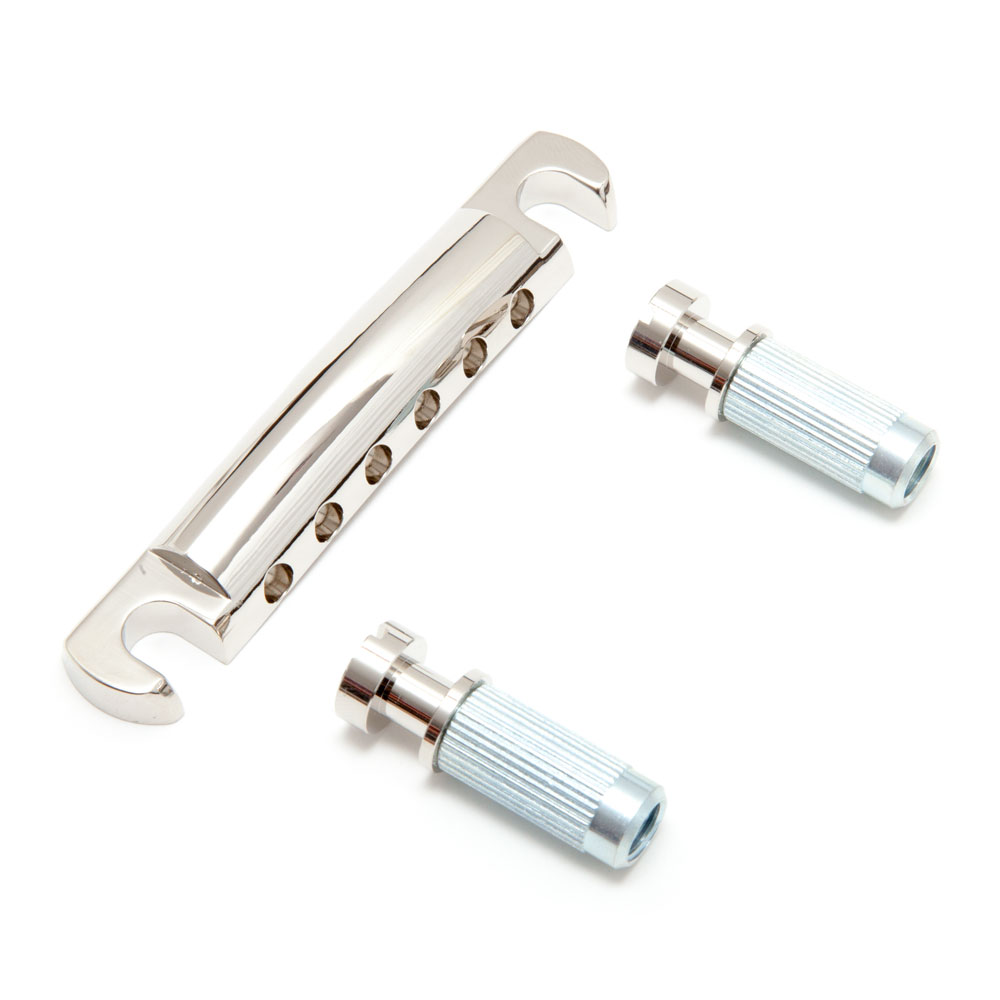 If you are upgrading parts on a metric ‘import’ guitar (Epiphone, Schecter, ESP LTD etc), the 8 mm posts supplied will screw directly into the vast majority of existing tailpiece body bushings, for imperial USA guitars (e.g. a Gibson Les Paul) use the Gotoh tailpiece body only as it will fit on to the existing imperial posts. The tailpiece comes with brass studs/posts and steel bushings/anchors.